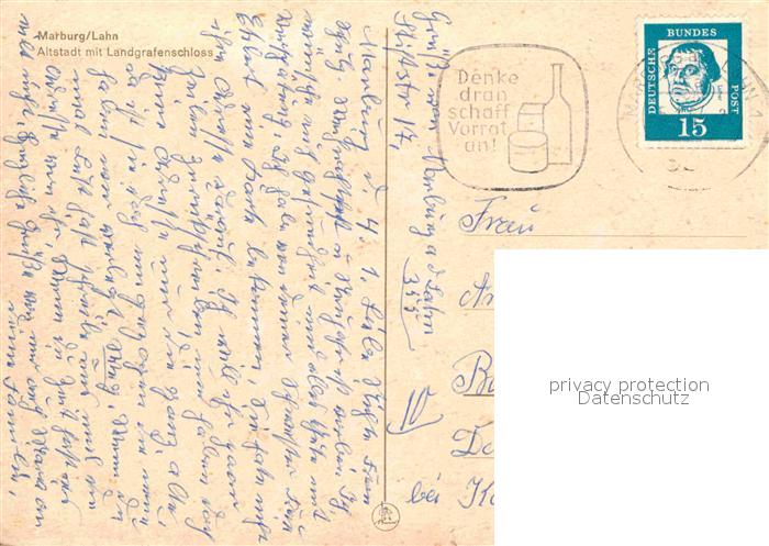 72616612 alte Postkarte Marburg Lahn Altstadt mit Landgrafenschloss postalisch gelaufen Erhaltung siehe scans [FriedD77] KatCode: 11110006534014
