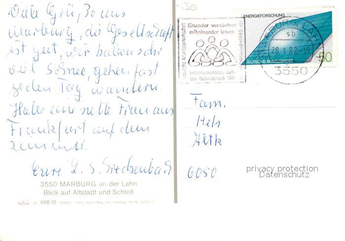 73246476 alte Postkarte Marburg Lahn Altstadt und Schloss Fliegeraufnahme postalisch gelaufen Erhaltung siehe scans [FriedD77] KatCode: 11110006534014