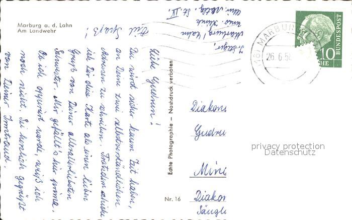 71861548 alte Postkarte Marburg Lahn Am Landwehr Universitaetsstadt postalisch gelaufen Erhaltung siehe scans KatCode: 11110006534014