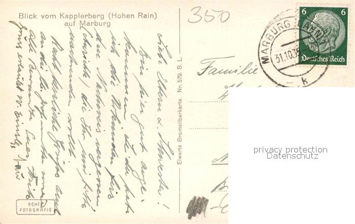 73570713 alte Postkarte Marburg Lahn Blick vom Kapplerberg postalisch gelaufen Erhaltung siehe scans [WerneD78] KatCode: 11110006534014