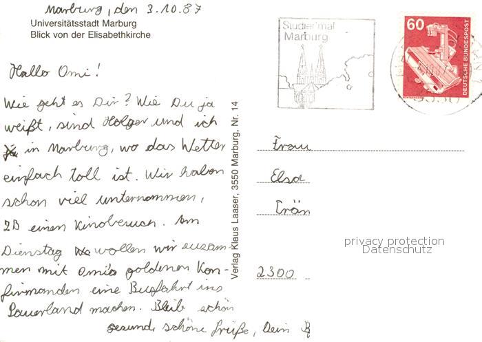 73059965 alte Postkarte Marburg Lahn Blick von der Elisabethkirche postalisch gelaufen Erhaltung siehe scans [WerneD78] KatCode: 11110006534014