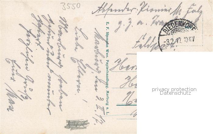 73692503 alte Postkarte Marburg Lahn Blick von der Schaeferbuche postalisch gelaufen Feldpost auf Karte (Motiv) Erhaltung siehe scans [WerneD78] KatCode: 11110006534014