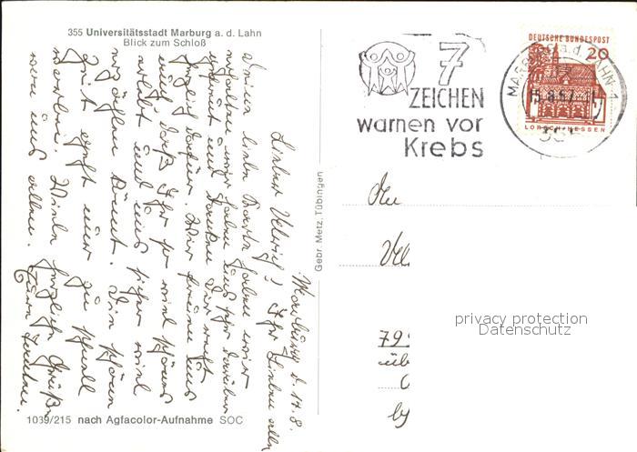 72610143 alte Postkarte Marburg Lahn Blick zum Schloss postalisch gelaufen Erhaltung siehe scans [PaolaD17] KatCode: 11110006534014