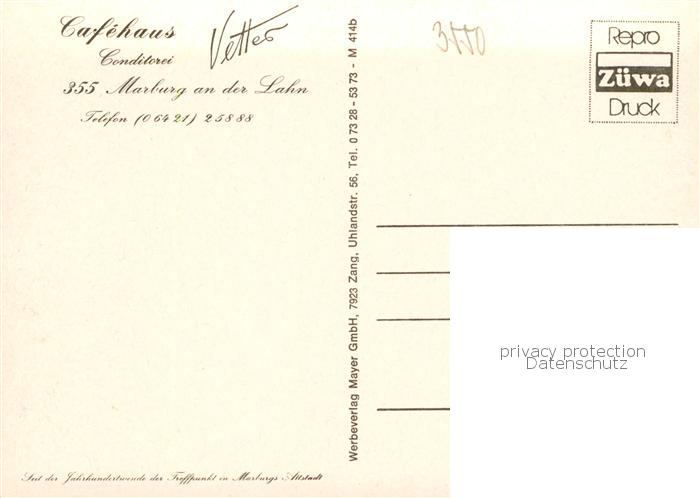 73863021 Marburg Lahn Cafehaus Conditorei Vetter postalisch nicht gelaufen Erhaltung siehe scans [FriedD77] KatCode: 11110006534014