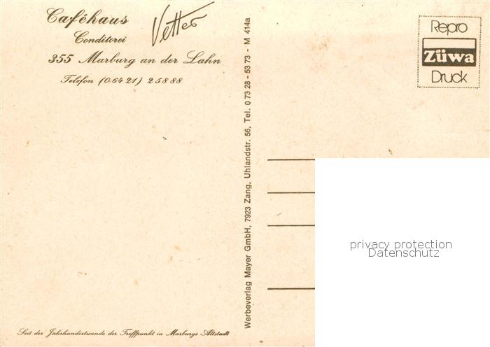 73863024 Marburg Lahn Cafehaus Conditorei Vetter Altstadt postalisch nicht gelaufen Erhaltung siehe scans [FriedD77] KatCode: 11110006534014