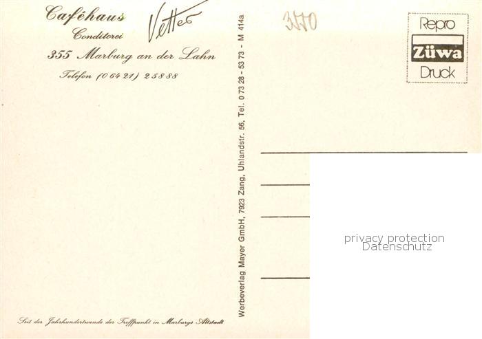 73863022 Marburg Lahn Cafehaus Conditorei Vetter postalisch nicht gelaufen Erhaltung siehe scans [FriedD77] KatCode: 11110006534014