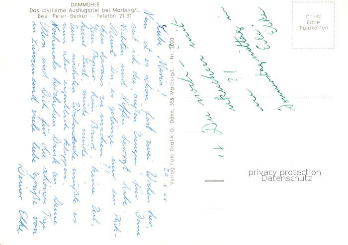 73100525 Marburg Lahn Dammuehle postalisch nicht gelaufen Erhaltung siehe scans [KathaD81] KatCode: 11110006534014