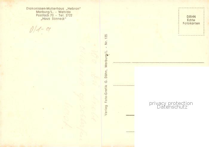73853975 Marburg Lahn Diakonissen Mutterhaus Hebron Haus Sonneck postalisch nicht gelaufen Erhaltung siehe scans [WerneD78] KatCode: 11110006534014