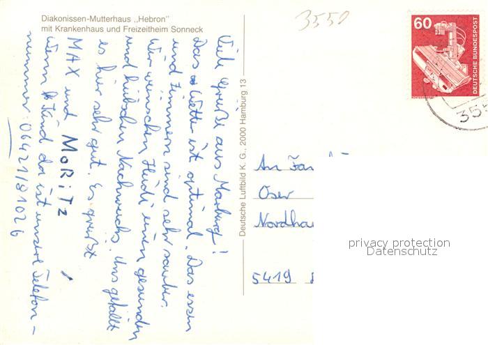 73540111 alte Postkarte Marburg Lahn Diakonissen Mutterhaus Hebron mit Krankenhaus und Freizeitheim Sonneck Fliegeraufnahme postalisch gelaufen Erhaltung siehe scans [WerneD78] KatCode: 11110006534014