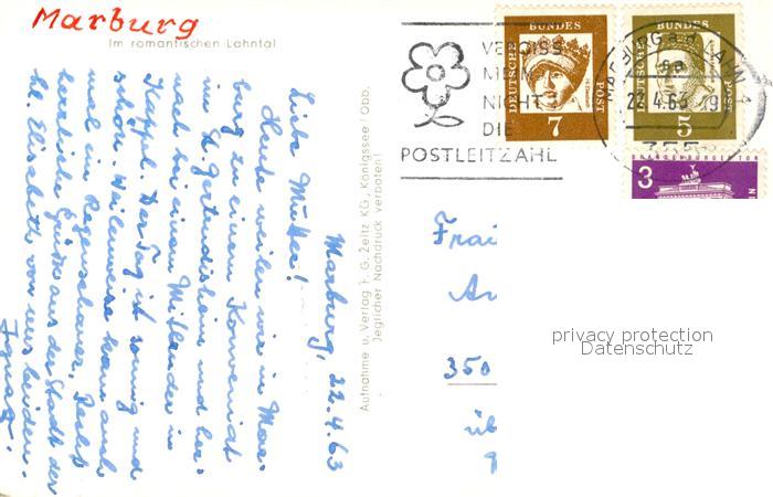 73212576 alte Postkarte Marburg Lahn Durchblick zur Stadt mit Schloss postalisch gelaufen Erhaltung siehe scans [FriedD77] KatCode: 11110006534014