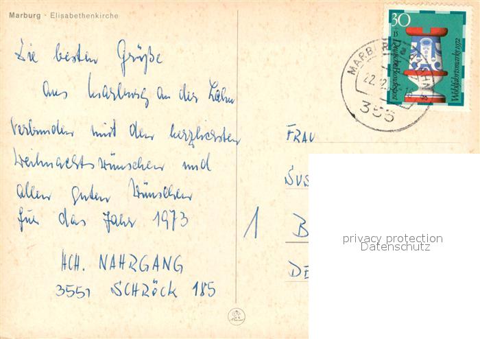 73124720 alte Postkarte Marburg Lahn Elisabethenkirche postalisch gelaufen Erhaltung siehe scans [FriedD77] KatCode: 11110006534014