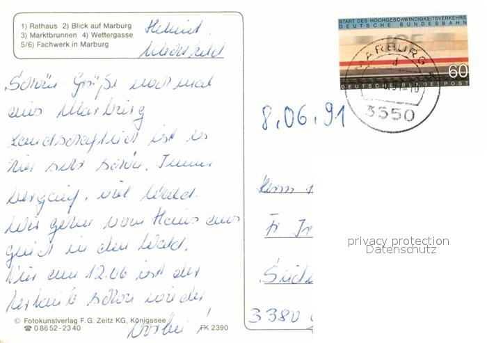 72854589 alte Postkarte Marburg Lahn Fachwerk Marktbrunnen Wettergasse Universiaetsstadt postalisch gelaufen Erhaltung siehe scans [LiesaD40] KatCode: 11110006534014