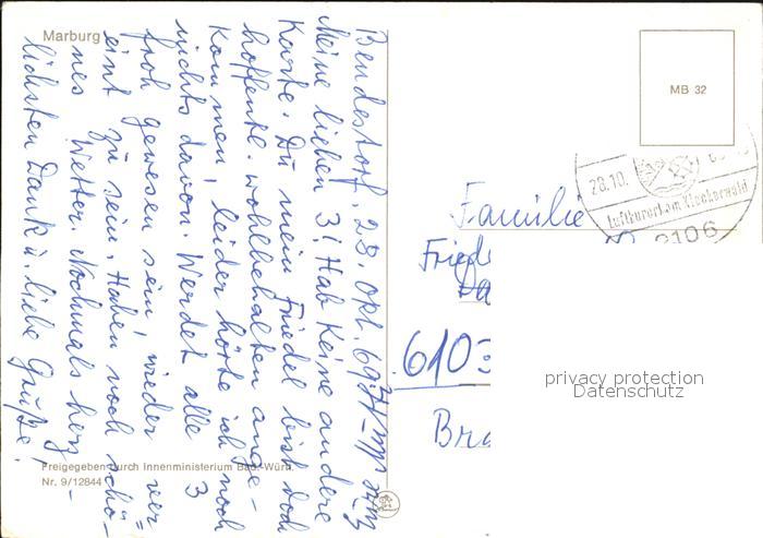 72477762 alte Postkarte Marburg Lahn Fliegeraufnahme postalisch gelaufen Erhaltung siehe scans KatCode: 11110006534014