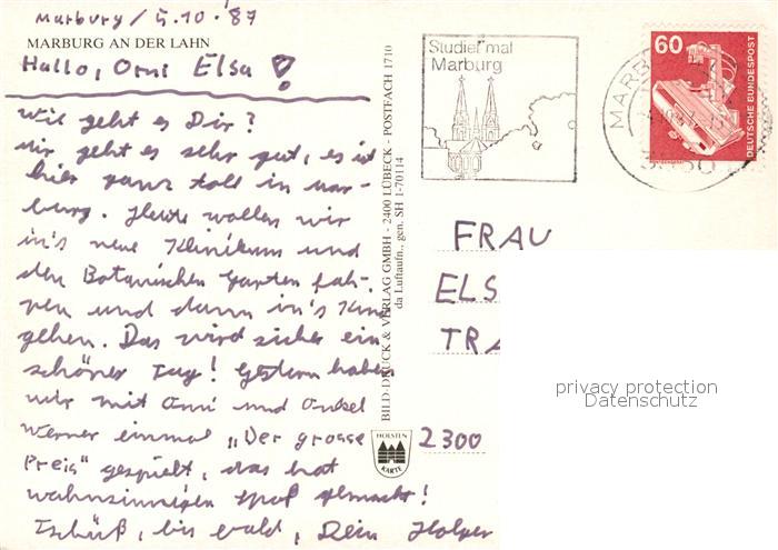 73059278 alte Postkarte Marburg Lahn Fliegeraufnahme postalisch gelaufen Erhaltung siehe scans [WerneD78] KatCode: 11110006534014