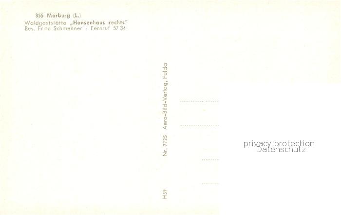 73835040 Marburg Lahn Fliegeraufnahme Waldgaststaette Hansenhaus postalisch nicht gelaufen Erhaltung siehe scans [WerneD78] KatCode: 11110006534014