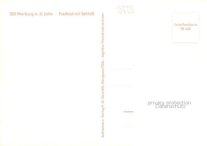 73863019 Marburg Lahn Freibad mit Blick zum Schloss postalisch nicht gelaufen Erhaltung siehe scans [FriedD77] KatCode: 11110006534014