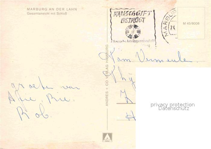 72914983 alte Postkarte Marburg Lahn Gesamtansicht mit Schloss postalisch gelaufen Erhaltung siehe scans [FriedD77] KatCode: 11110006534014
