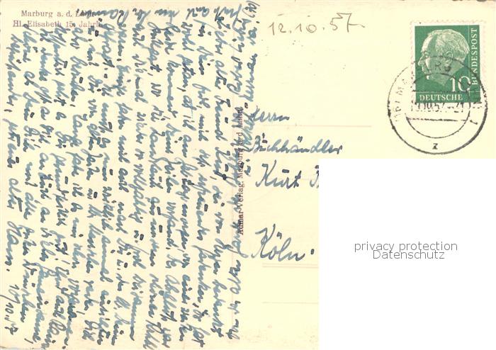 73768254 alte Postkarte Marburg Lahn Hl Elisabeth 15tes Jhdt postalisch gelaufen Erhaltung siehe scans [WerneD78] KatCode: 11110006534014