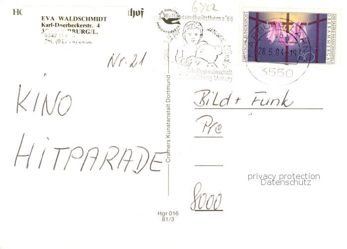 73863291 alte Postkarte Marburg Lahn Hotel Restaurant Waldschmidt postalisch gelaufen Erhaltung siehe scans [FriedD77] KatCode: 11110006534014
