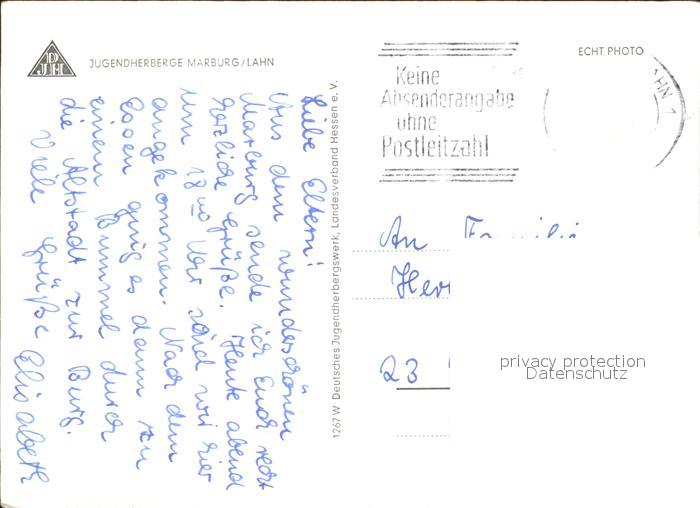 72017779 alte Postkarte Marburg Lahn Jugendherberge postalisch gelaufen Erhaltung siehe scans KatCode: 11110006534014