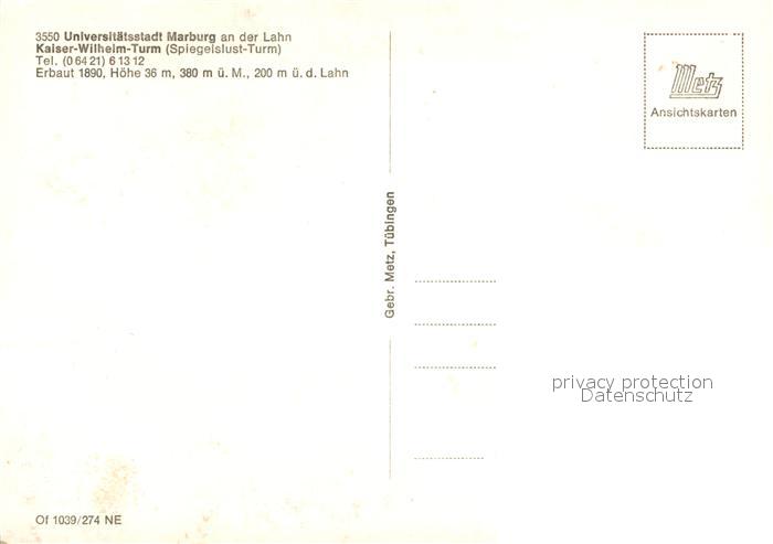 Marburg Lahn Kaiser Wilhelm Turm Spiegelslust Turm