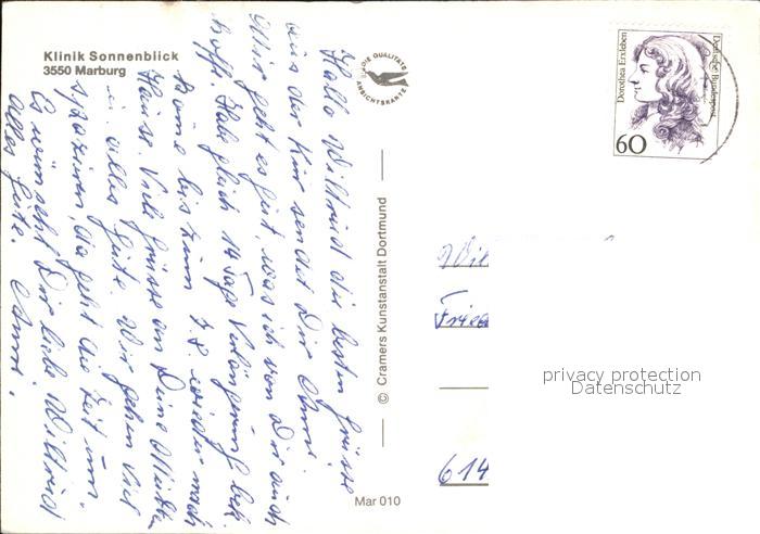 alte Postkarte Marburg Lahn Klinik Sonnenblick postalisch gelaufen Erhaltung siehe scans