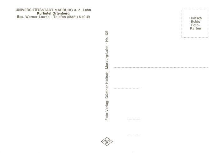 73876239 Marburg Lahn Kurhotel Ortenberg postalisch nicht gelaufen Erhaltung siehe scans [WerneD78] KatCode: 11110006534014