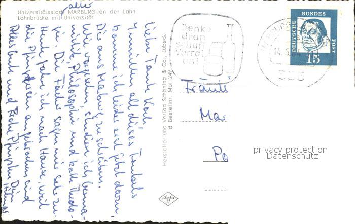 72272336 alte Postkarte Marburg Lahn Lahnbruecke mit Universitaet postalisch gelaufen Erhaltung siehe scans KatCode: 11110006534014