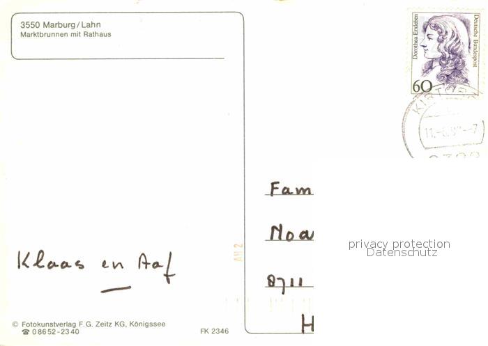 72858188 alte Postkarte Marburg Lahn Marktbrunnen Rathaus postalisch gelaufen Erhaltung siehe scans [NatalD47] KatCode: 11110006534014