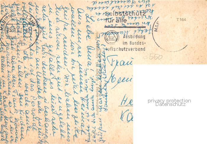 73169026 alte Postkarte Marburg Lahn Marktplatz Elisabethkirche Lahnpartie Stadtpanorama Schloss Universitaet Marktbrunnen postalisch gelaufen Erhaltung siehe scans [FriedD77] KatCode: 11110006534014