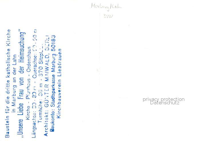 73865871 Marburg Lahn Modell der Kirche Unsere Liebe Frau von der Heimsuchung postalisch nicht gelaufen Erhaltung siehe scans [WerneD78] KatCode: 11110006534014