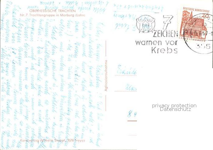 72148610 alte Postkarte Marburg Lahn Oberhessische Trachten postalisch gelaufen Erhaltung siehe scans KatCode: 11110006534014