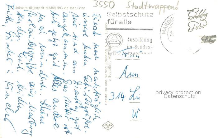 73692541 alte Postkarte Marburg Lahn Panorama Marktplatz mit Rathaus Lahnbruecke mit Universitaet Schloss postalisch gelaufen Erhaltung siehe scans [WerneD78] KatCode: 11110006534014