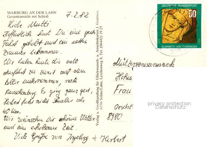 73020575 alte Postkarte Marburg Lahn Panorama mit Schloss postalisch gelaufen Erhaltung siehe scans [WerneD78] KatCode: 11110006534014