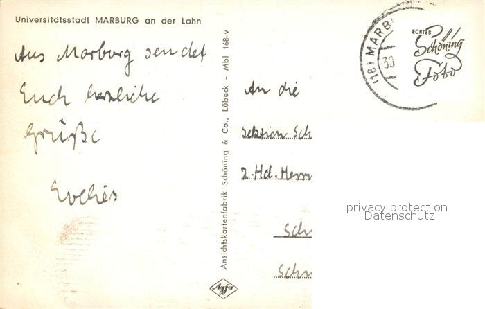 73335276 alte Postkarte Marburg Lahn Panorama Universitaetsstadt mit Schloss postalisch gelaufen Erhaltung siehe scans [FriedD77] KatCode: 11110006534014