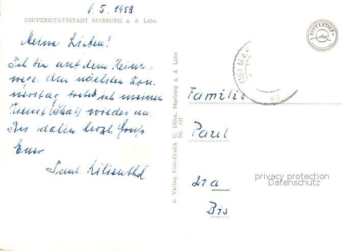 72926375 alte Postkarte Marburg Lahn Philippsuniversitaet Bruecke postalisch gelaufen Erhaltung siehe scans [WerneD78] KatCode: 11110006534014