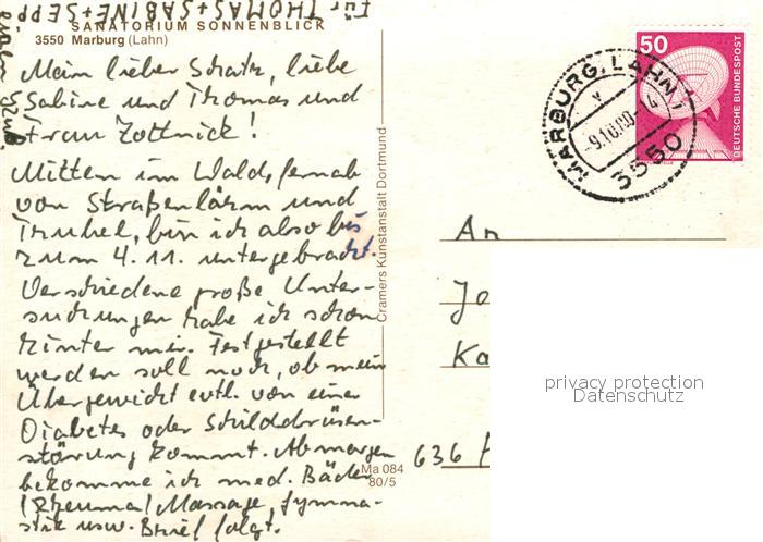 73224576 alte Postkarte Marburg Lahn Sanatorium Sonnenblick postalisch gelaufen Erhaltung siehe scans [KathaD81] KatCode: 11110006534014