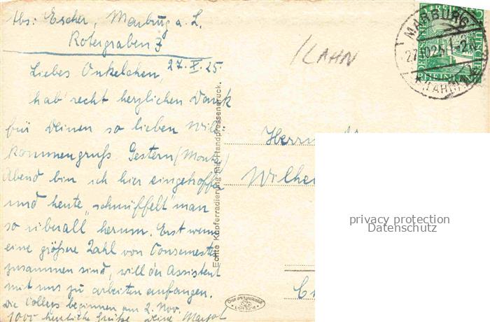74036867 alte Postkarte MARBURG LAHN Universitaet postalisch gelaufen Erhaltung siehe scans [WerneD78] KatCode: 11110006534014
