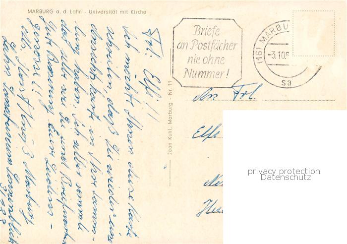 73865407 alte Postkarte Marburg Lahn Universitaet mit Kirche postalisch gelaufen Erhaltung siehe scans [WerneD78] KatCode: 11110006534014