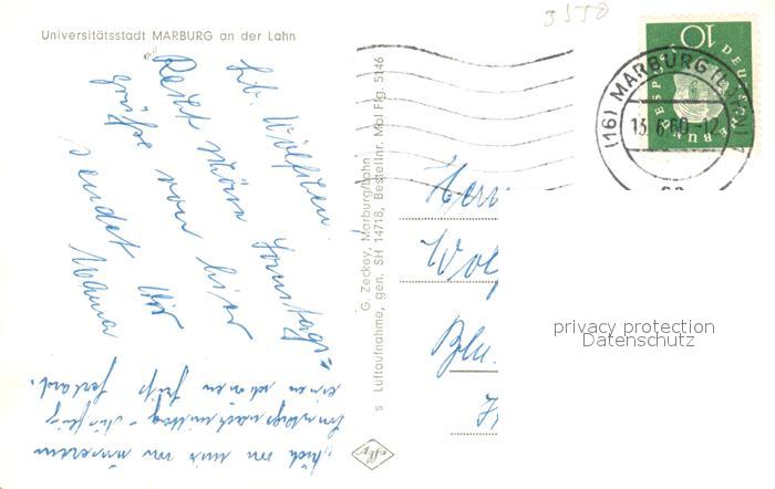 43368664 alte Postkarte Marburg Lahn Universitaetsstadt mit Kirche und Schloss Fliegeraufnahme postalisch gelaufen Erhaltung siehe scans [FriedD77] KatCode: 11110006534014