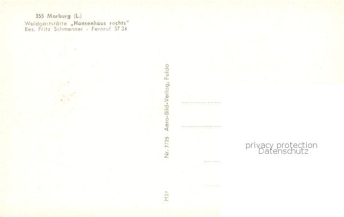 73835055 Marburg Lahn Waldgaststaette Hansenhaus Fliegeraufnahme postalisch nicht gelaufen Erhaltung siehe scans [WerneD78] KatCode: 11110006534014