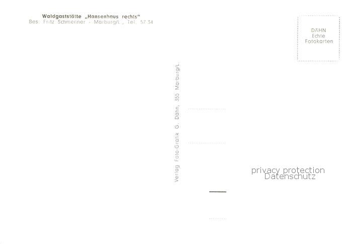 73835542 Marburg Lahn Waldgaststaette Hansenhaus rechts postalisch nicht gelaufen Erhaltung siehe scans [WerneD78] KatCode: 11110006534014