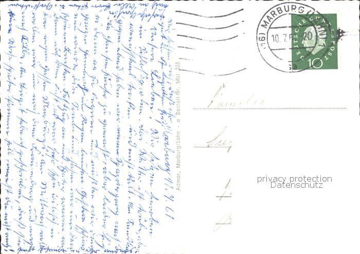 72253597 alte Postkarte Marburg Lahn Waltergasse Gesamtansicht Markt Brunnen Schloss Elisabethkirche postalisch gelaufen Erhaltung siehe scans KatCode: 11110006534014