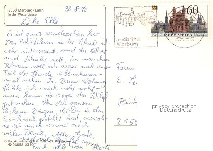 73059966 alte Postkarte Marburg Lahn Wettergasse postalisch gelaufen Erhaltung siehe scans [WerneD78] KatCode: 11110006534014