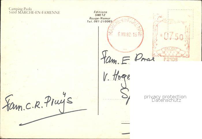 72478553 carte postale Marche-en-Famenne Camping Paola postalisch gelaufen Erhaltung siehe scans KatCode: 11070083001879
