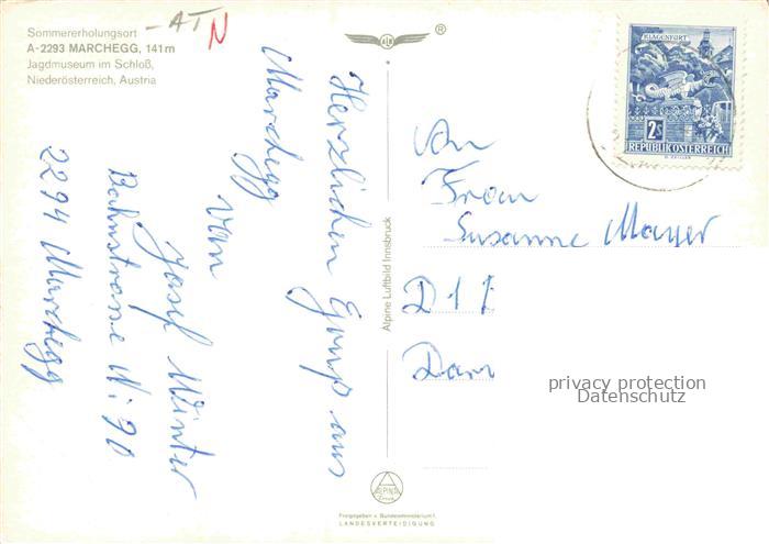 74156686 alte Postkarte Marchegg Niederoesterreich AT Marchfeld March-Fluss Schloss Jagdmuseum Dorf Kirche Auen Niederoesterreich postalisch gelaufen Fliegeraufnahme Erhaltung siehe scans [Karloger] KatCode: 11390126030835
