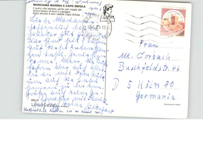 old postcard Marciana Marina Capo Enfola Porto postalisch gelaufen