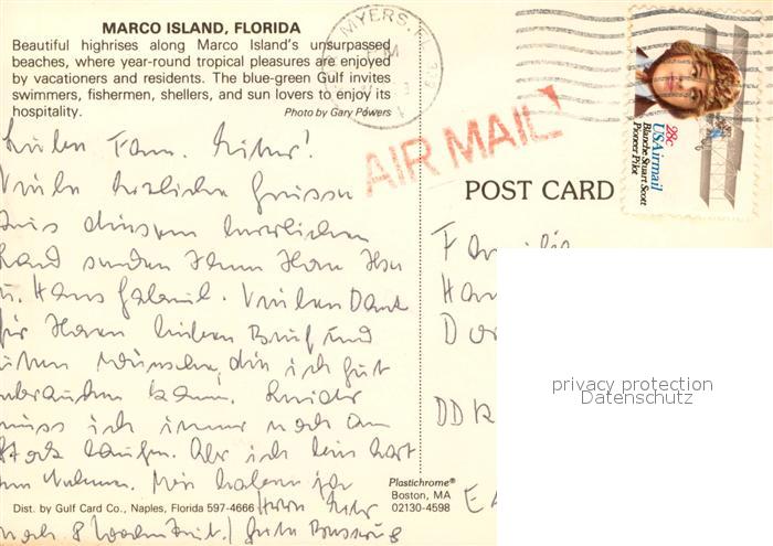 73718981 old postcard Marco Island Florida Condos Air view postalisch gelaufen Erhaltung siehe scans [WerneD78] KatCode: 14140110000000