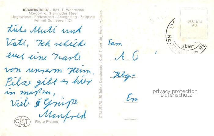 73795457 Mardorf Steinhuder Meer Dueckerstuben Liegewiese postalisch gelaufen Erhaltung siehe scans [WerneD78] alte Postkarte Wern Katcode 11110003241021