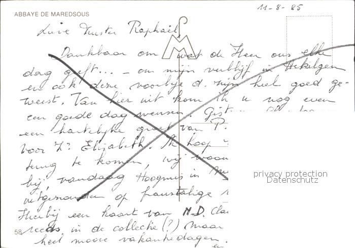 72270600 Maredsous Abbaye Kloster postalisch nicht gelaufen Erhaltung siehe scans KatCode: 11070091010093